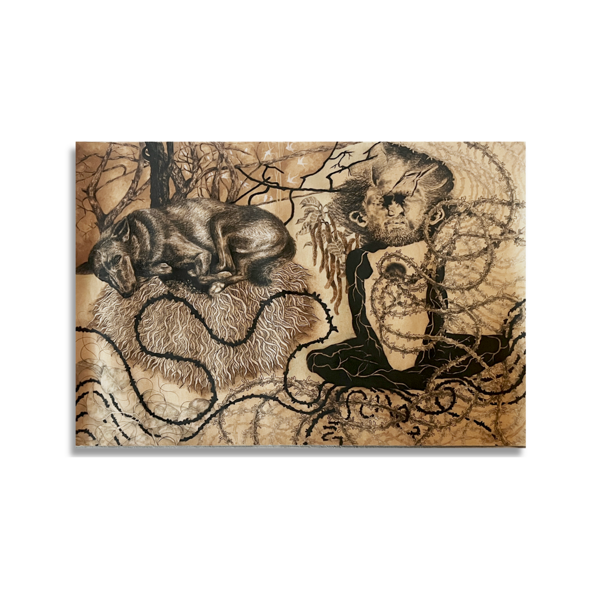 Ancestors soil, graphite, sand, cement, paint, perforation apply on acid free paper