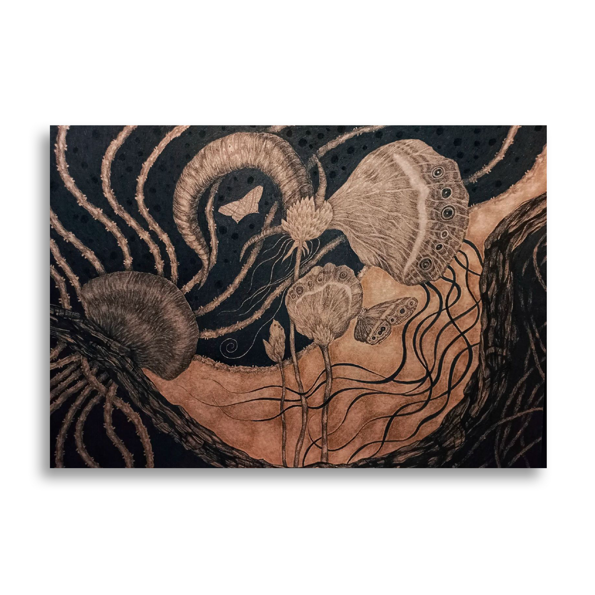 Ancestors soil, graphite, sand, cement, paint, perforation apply on acid free paper