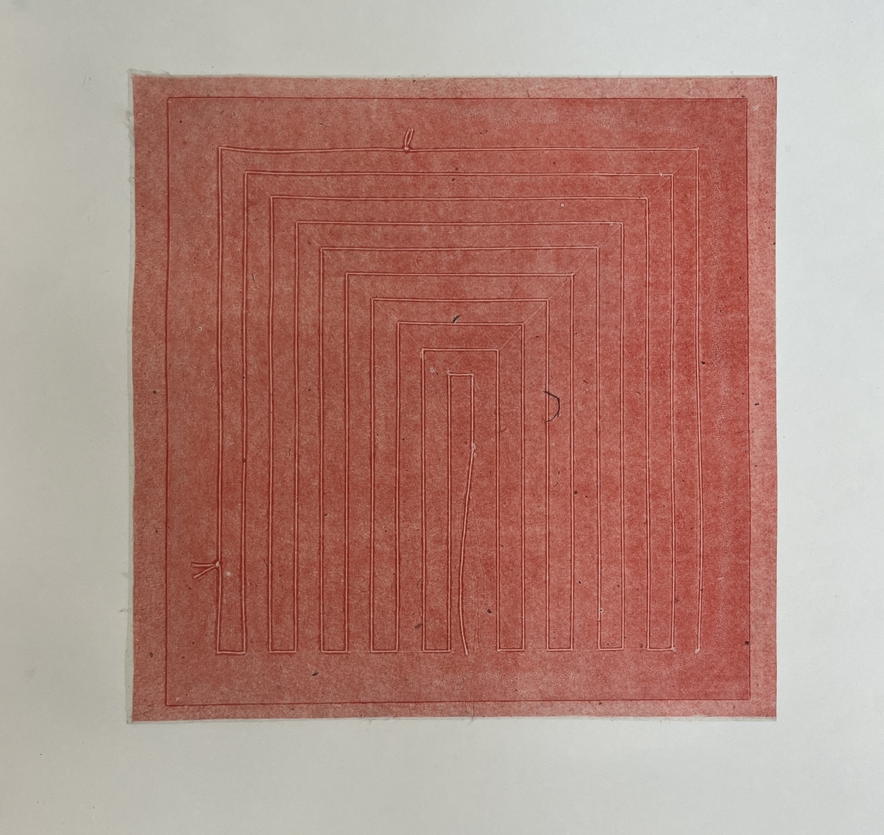 A recurring form in the series is the square. But these squares are not made by simply drawing four lines—they emerge from a single, continuous line that flows across the page. These lines intersect and evolve, forming structures that are not fixed, but alive within the composition.
