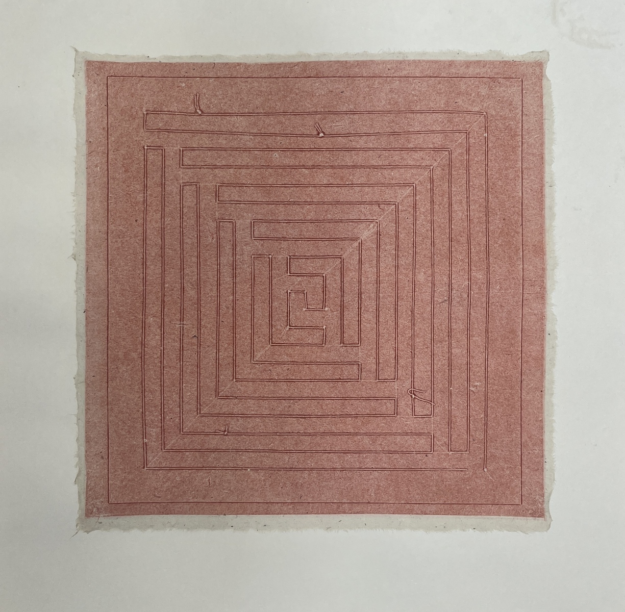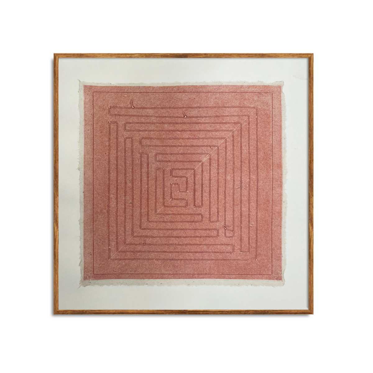 A recurring form in the series is the square. But these squares are not made by simply drawing four lines—they emerge from a single, continuous line that flows across the page. These lines intersect and evolve, forming structures that are not fixed, but alive within the composition.