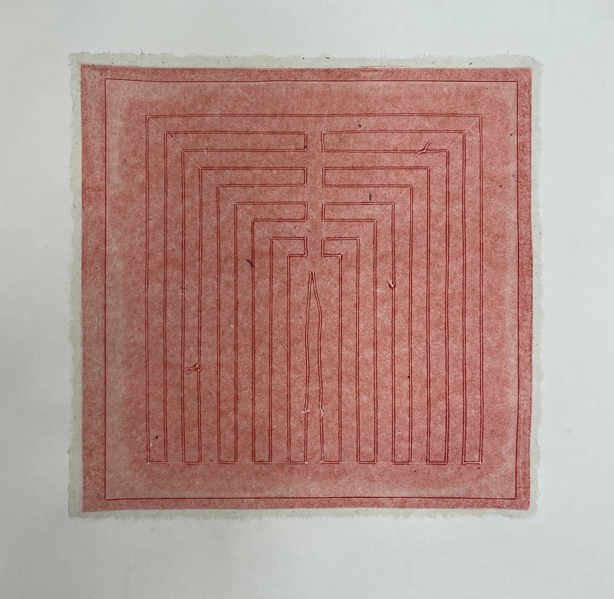 A recurring form in the series is the square. But these squares are not made by simply drawing four lines—they emerge from a single, continuous line that flows across the page. These lines intersect and evolve, forming structures that are not fixed, but alive within the composition.