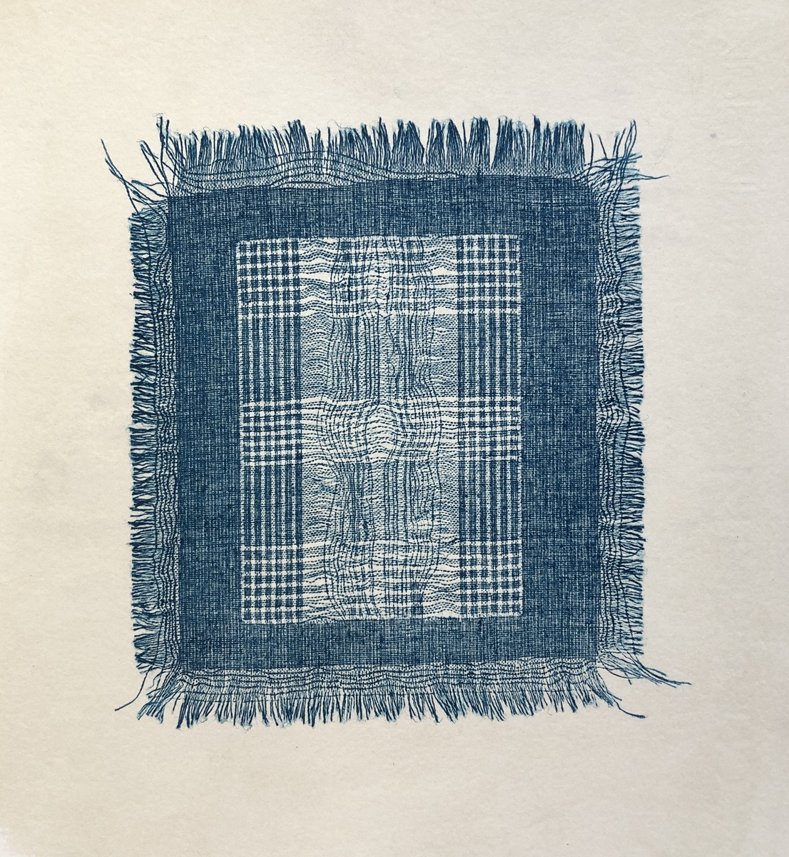 Intaglio on Cyanotype Print
