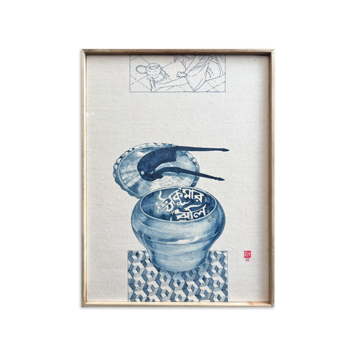 Natural indigo and rice paper on board