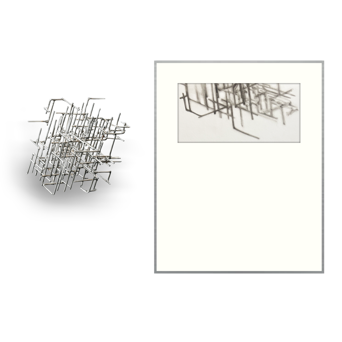 Sculpture: Stainless Steel Drawing: Charcoal on paper