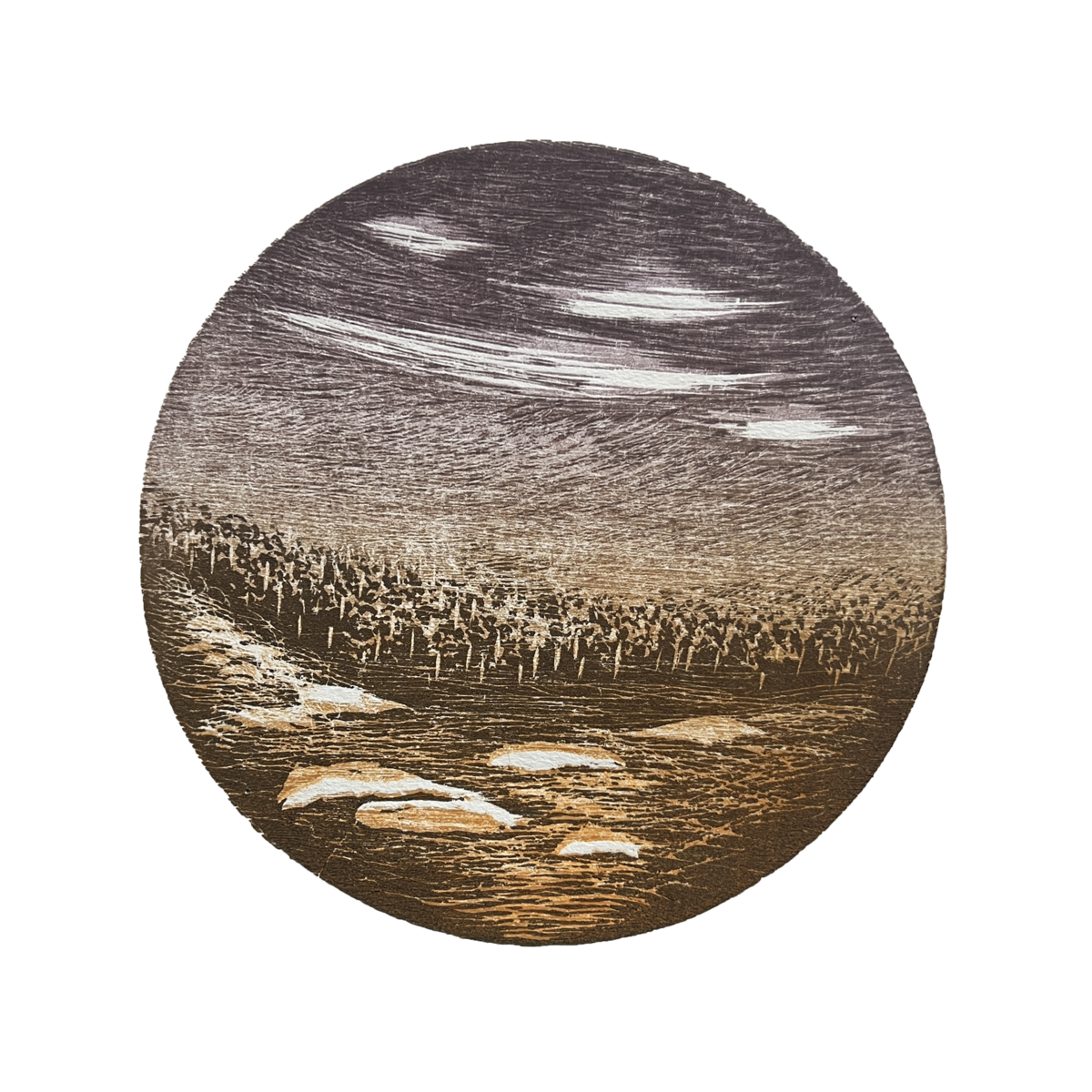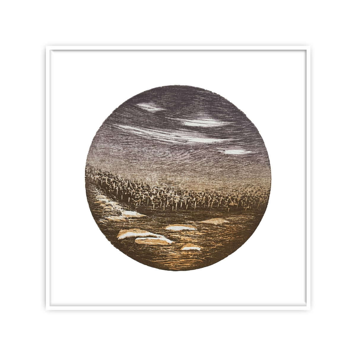 Dimensions: Artwork diameter : 7 inches , Framed dimensions : 11.5x11.5"Medium: Woodcut