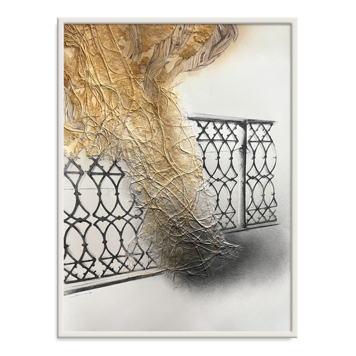 Ink, pigment and handmade paper pasted on acid free paper