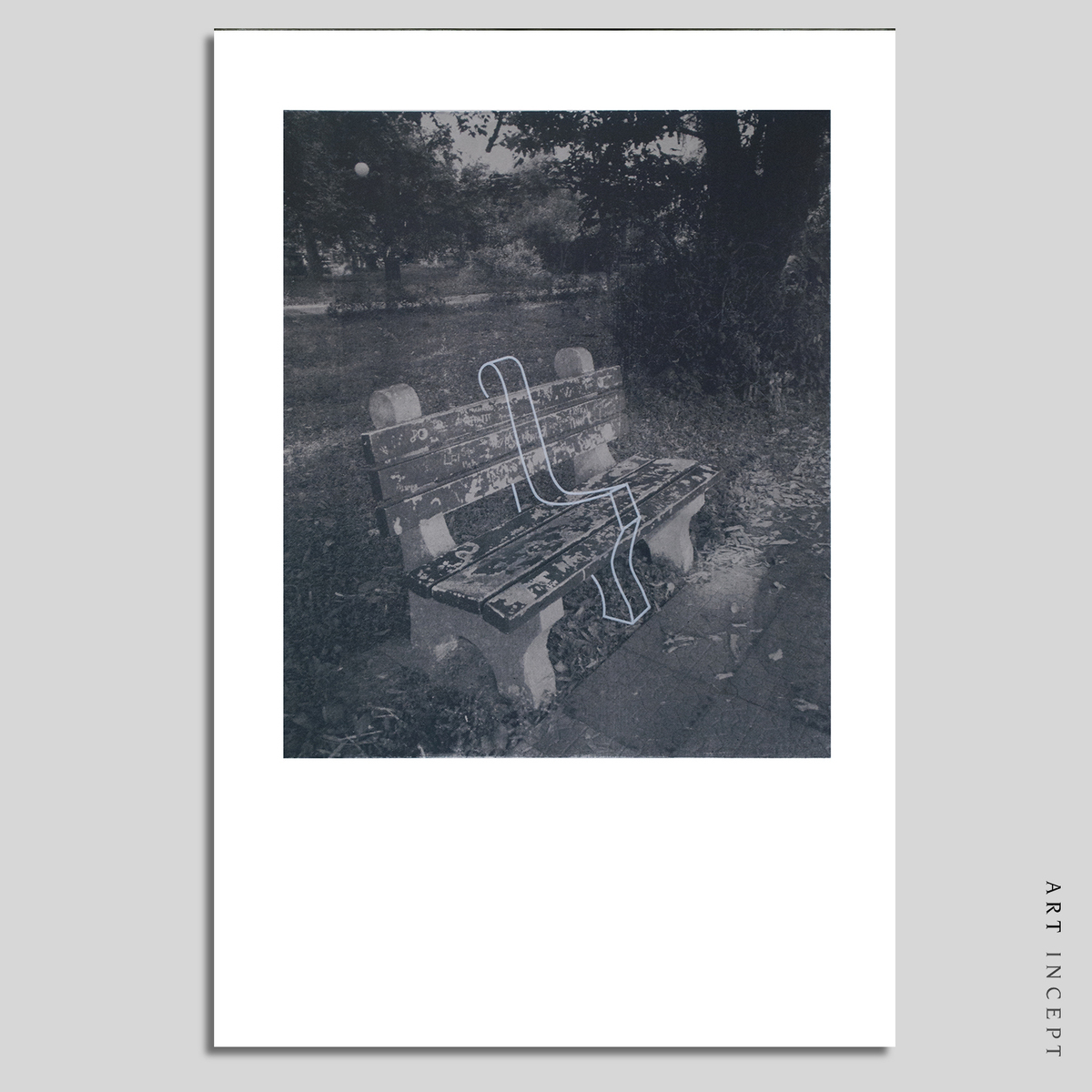 Intaglio on Cyanotype Print