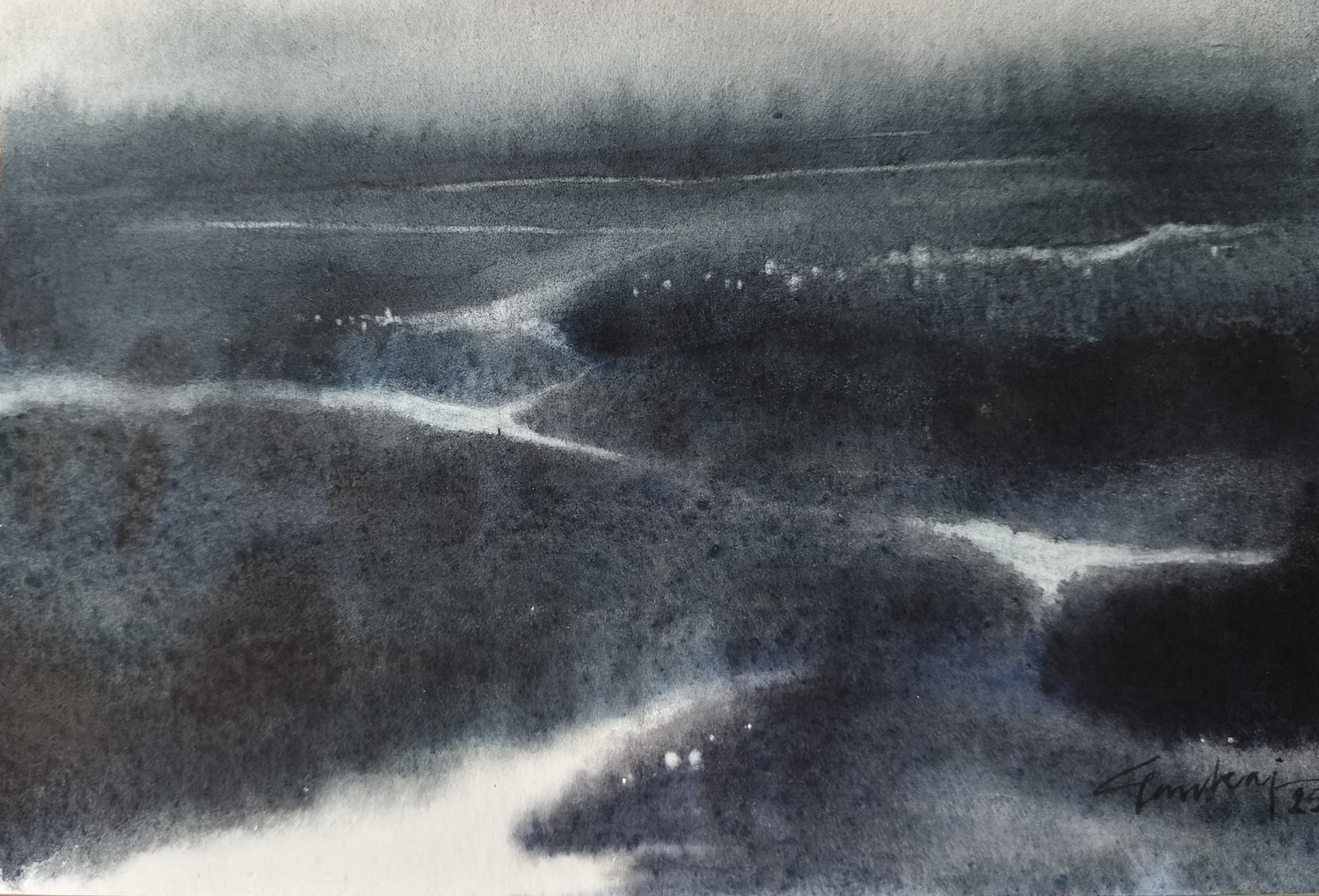 watercolor and pin work on paper
