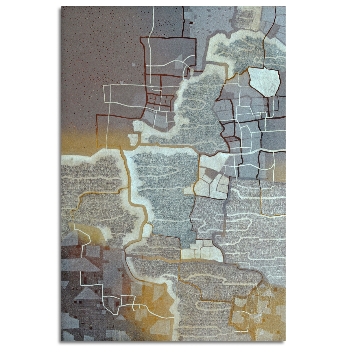 Rice paper and dry pigment on canvas