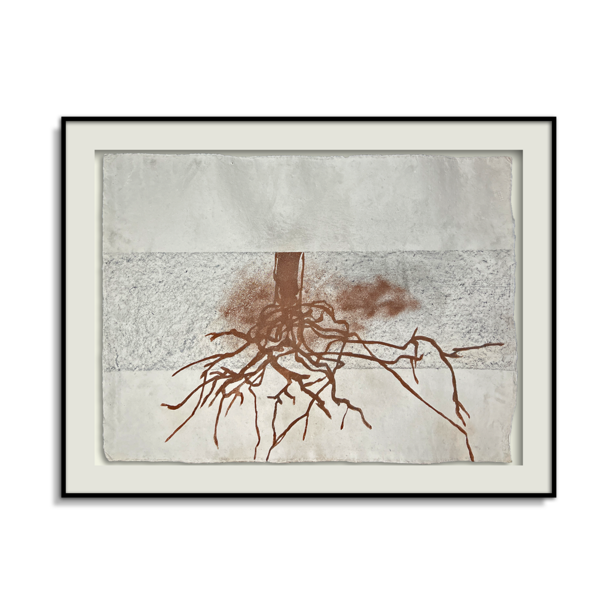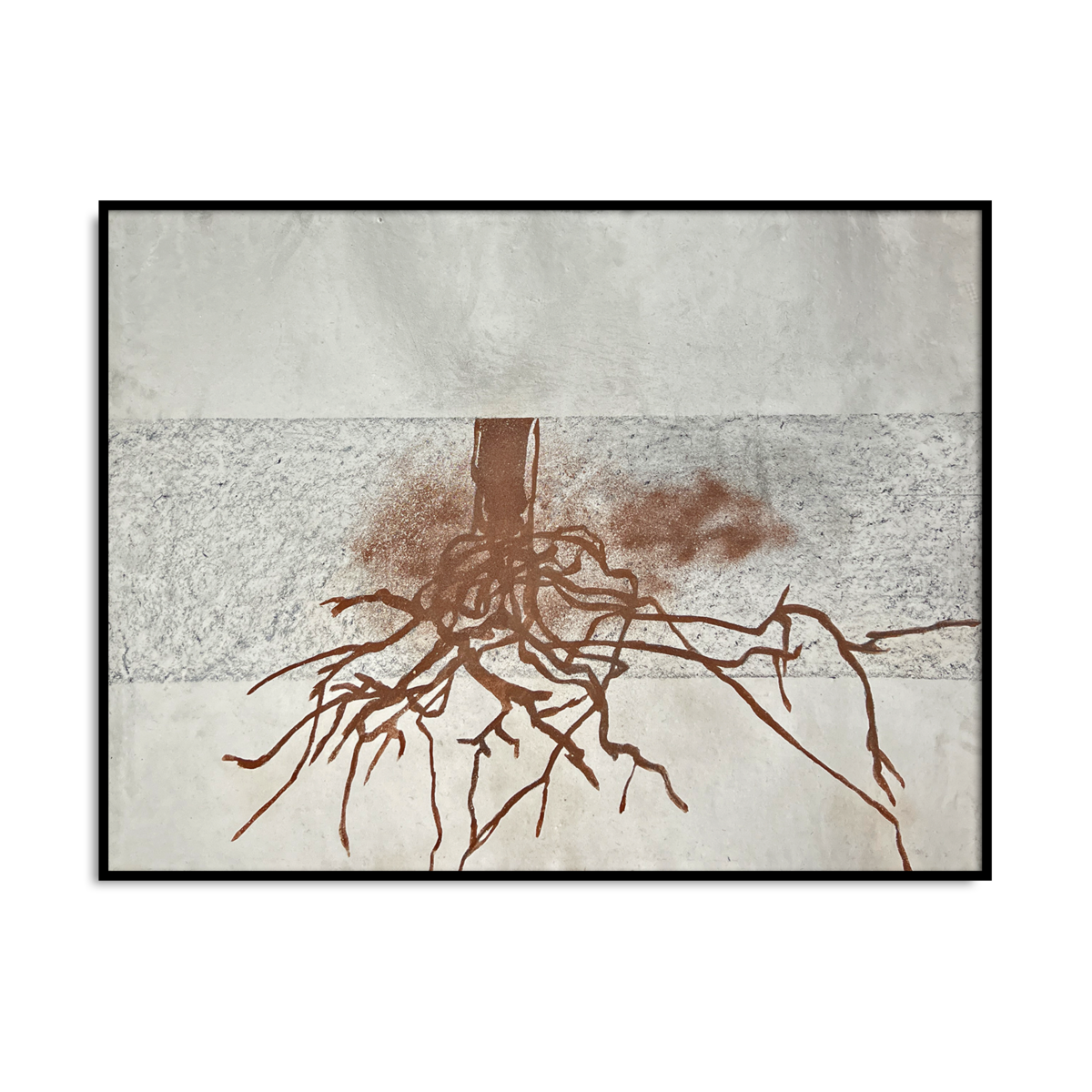 Ancestors soil, graphite, sand, cement, paint, perforation apply on acid free paper