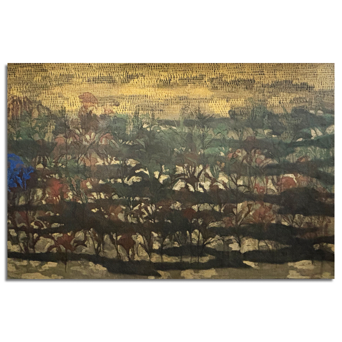 These psychological landscapes capture my inner response to the present, where boundaries and contamination of natural resources leave us struggling for breathable spaces. As we cut trees and replace them with concrete terrace gardens, driven by social, political, and economic reasons, life grows increasingly complicated. This unsettling reality compels me to portray these fears and questions—how we breathe today and what we leave for future generations.