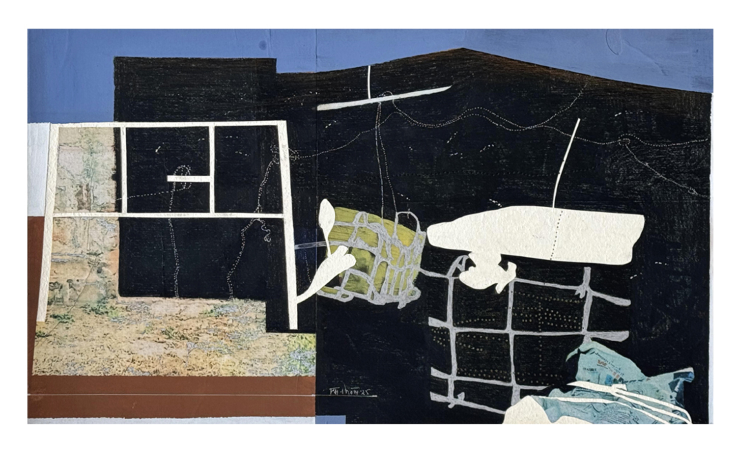 Ancestors soil, graphite, sand, cement, paint, perforation apply on acid free paper
