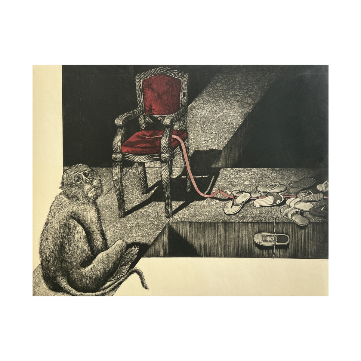 Deeply connected to his ancestral craft of pottery and terracotta, Yogesh explores themes of cultural memory, fading traditions, and the changing identity of his community. His compositions confront social stereotypes and unspoken realities, allowing viewers to resonate with these shared human experiences. Working primarily with intaglio and installation, Yogesh uses etched surfaces to symbolize the scars of societal structures, while installations made with familiar materials create an immersive dialogue between memory, material, and meaning. His recurring imagery of watchful eyes and paper boats reflects both the resilience and quiet struggle of potter communities whose identities often remain unnoticed.