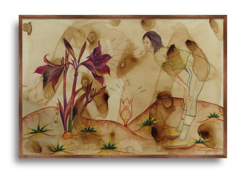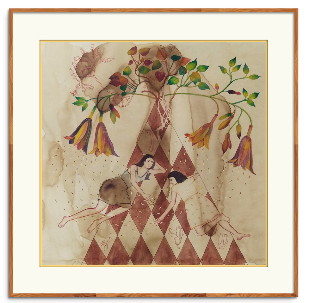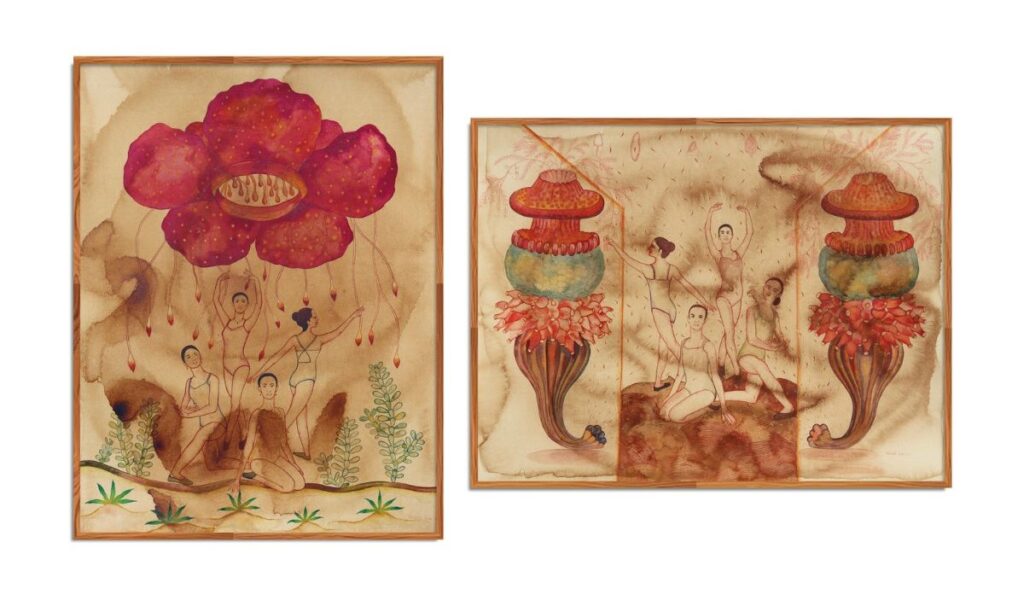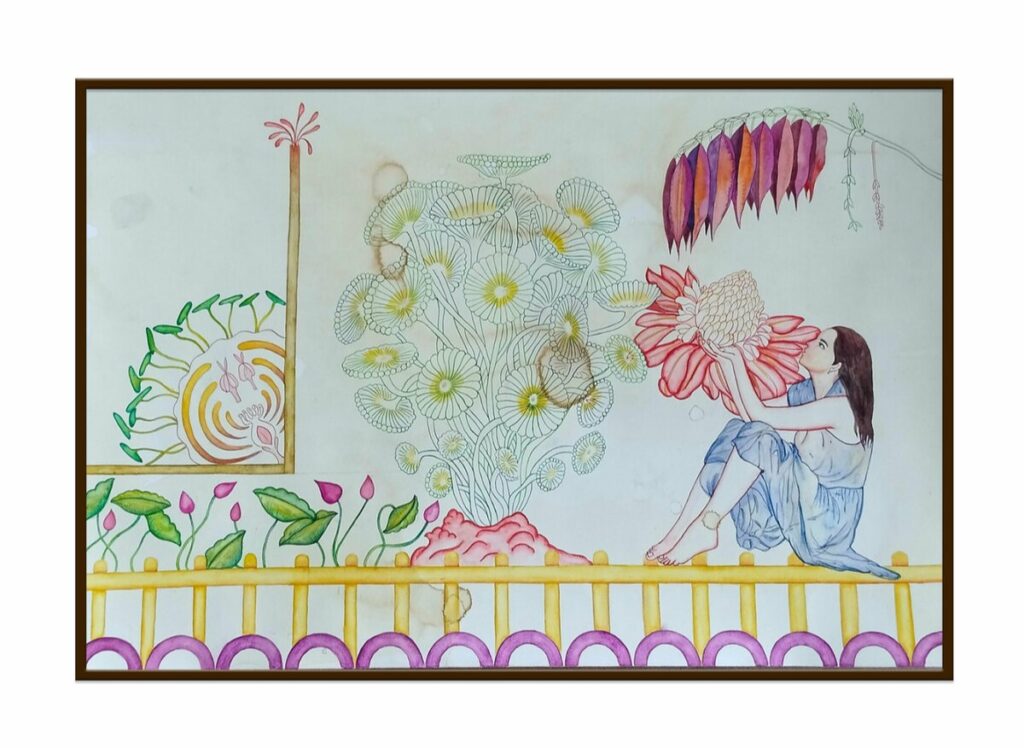 Deepanjali Shekhar: They are not dominant; they are growing together and protecting each other. It can also be seen as self-reflection and an emotional state. Many times, I try to show human emotions, feelings, and situations through nature, in both direct and indirect ways. That is why I use botanical elements to represent the different stages of a woman.