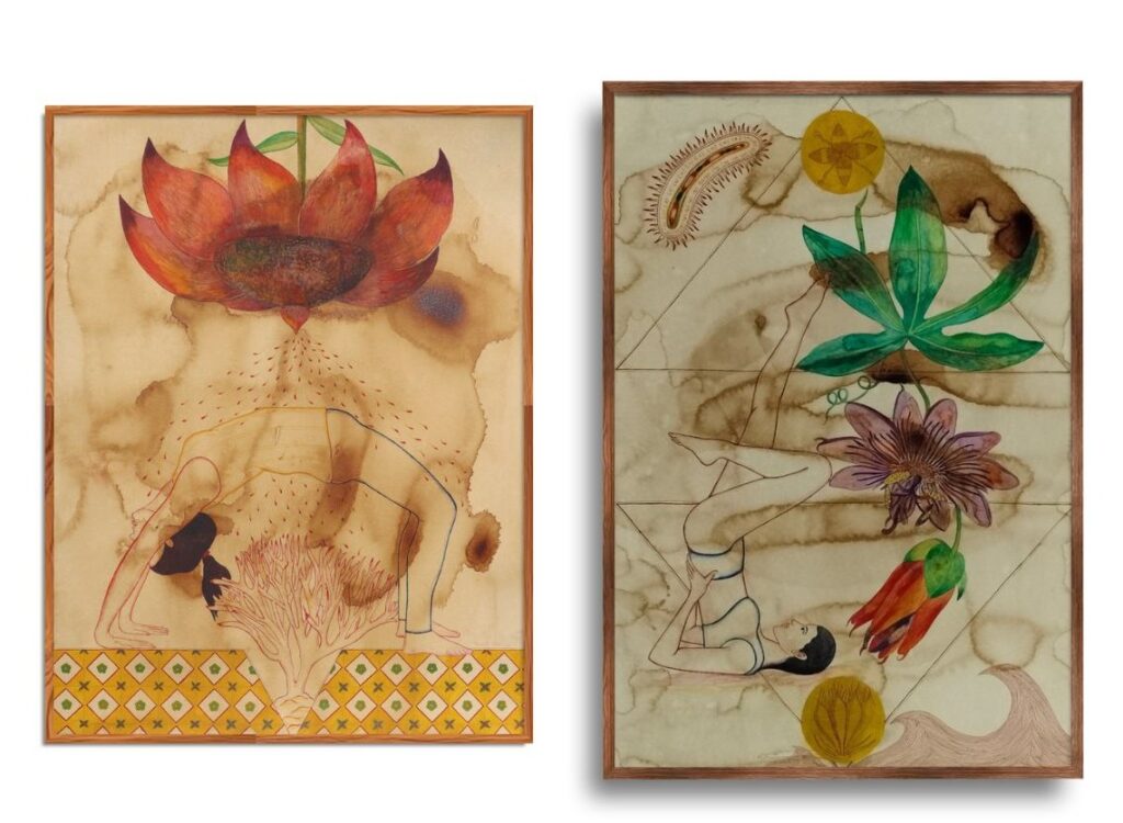 Deepanjali Shekhar: You can call it reflection and healing. When I practice yoga and truly feel it, it brings a deep sense of peace and calmness, and I go into a meditative self-reflection. That is why, in my work, I draw and use yoga poses as a way to express that experience.