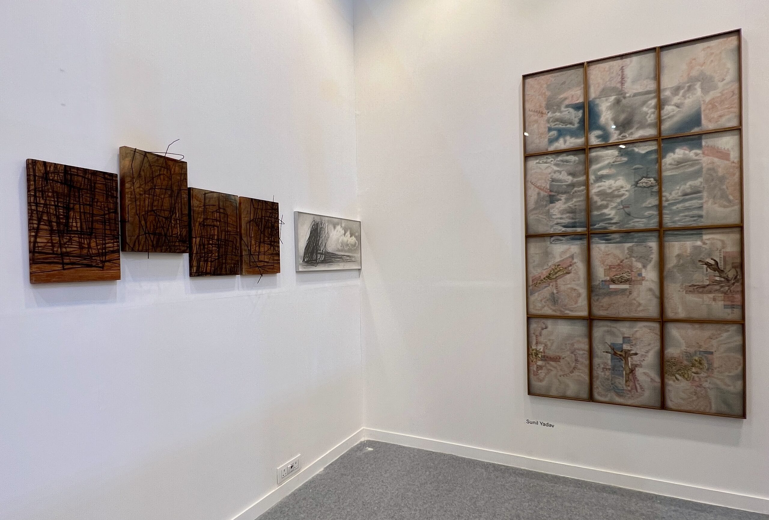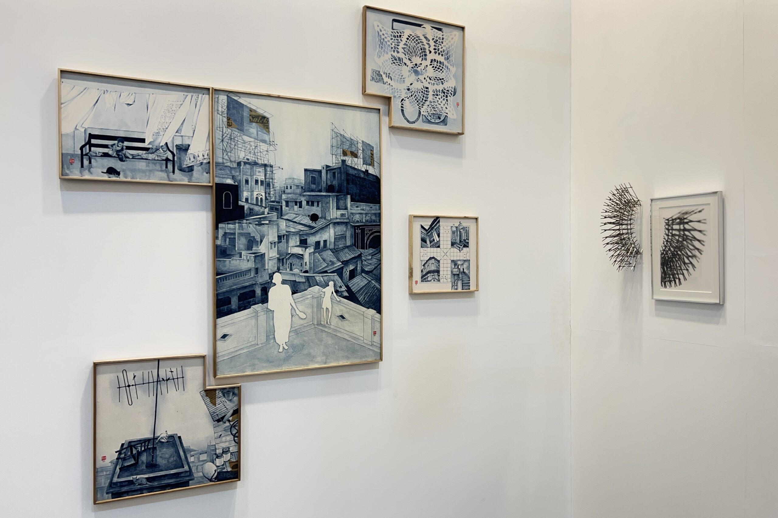 From the meditative charcoal drawings of Badush Babu and Bedamati Majhi, to the lyrical abstractions of Pankaj Chouhan, and the delicate indigo renderings of memory by Jit Chowdhury, the exhibition reveals how form can become a vessel for reflection. Debajit R Paul’s poetic landscapes and Sanal PT’s layered narratives on history and resistance explore the porous boundaries between the real and the remembered. Parul Sharma’s brick-dust paintings evoke the density of urban life, while Rinku Choudhary’s intimate figurations dwell in the silences of domesticity.