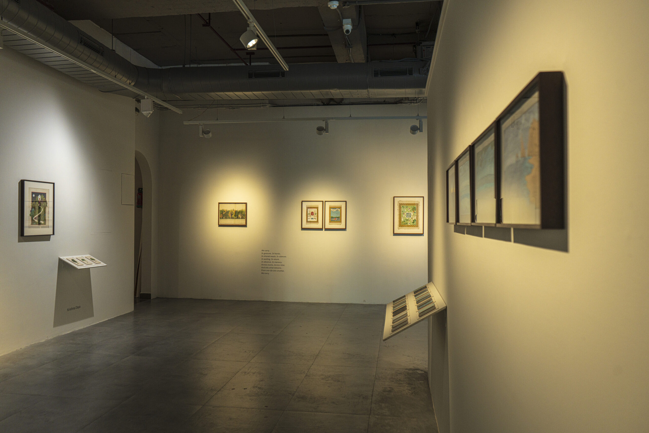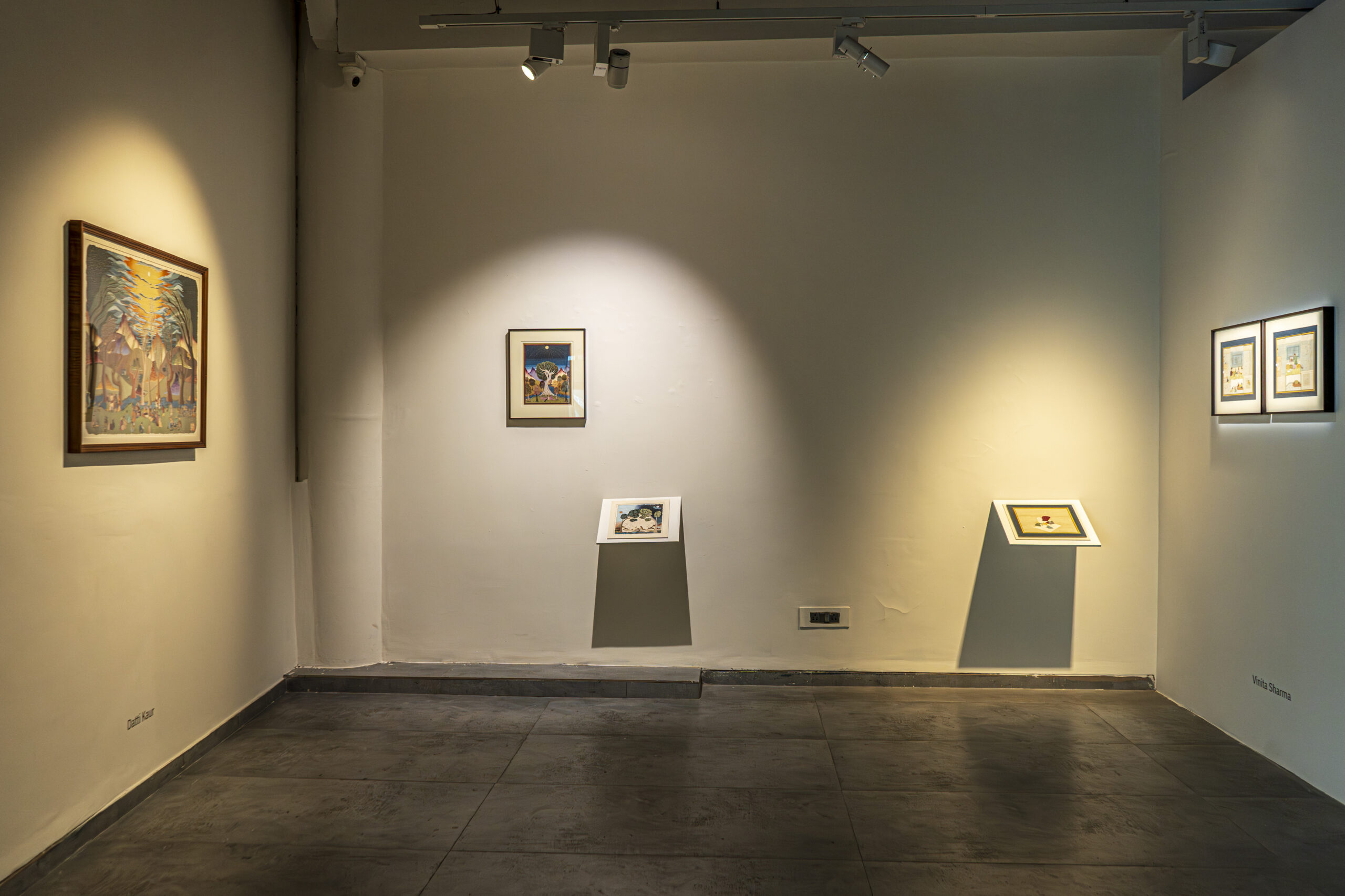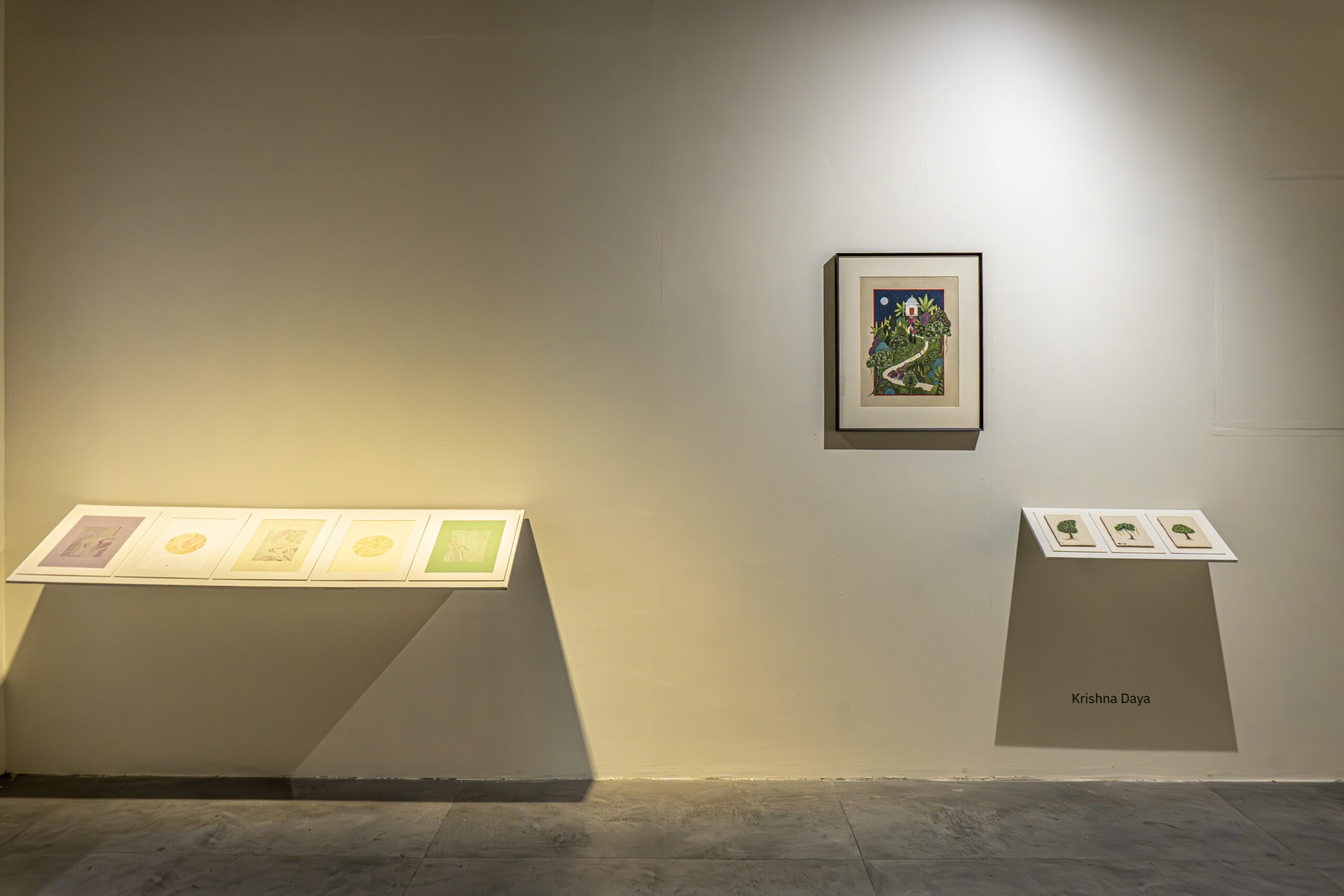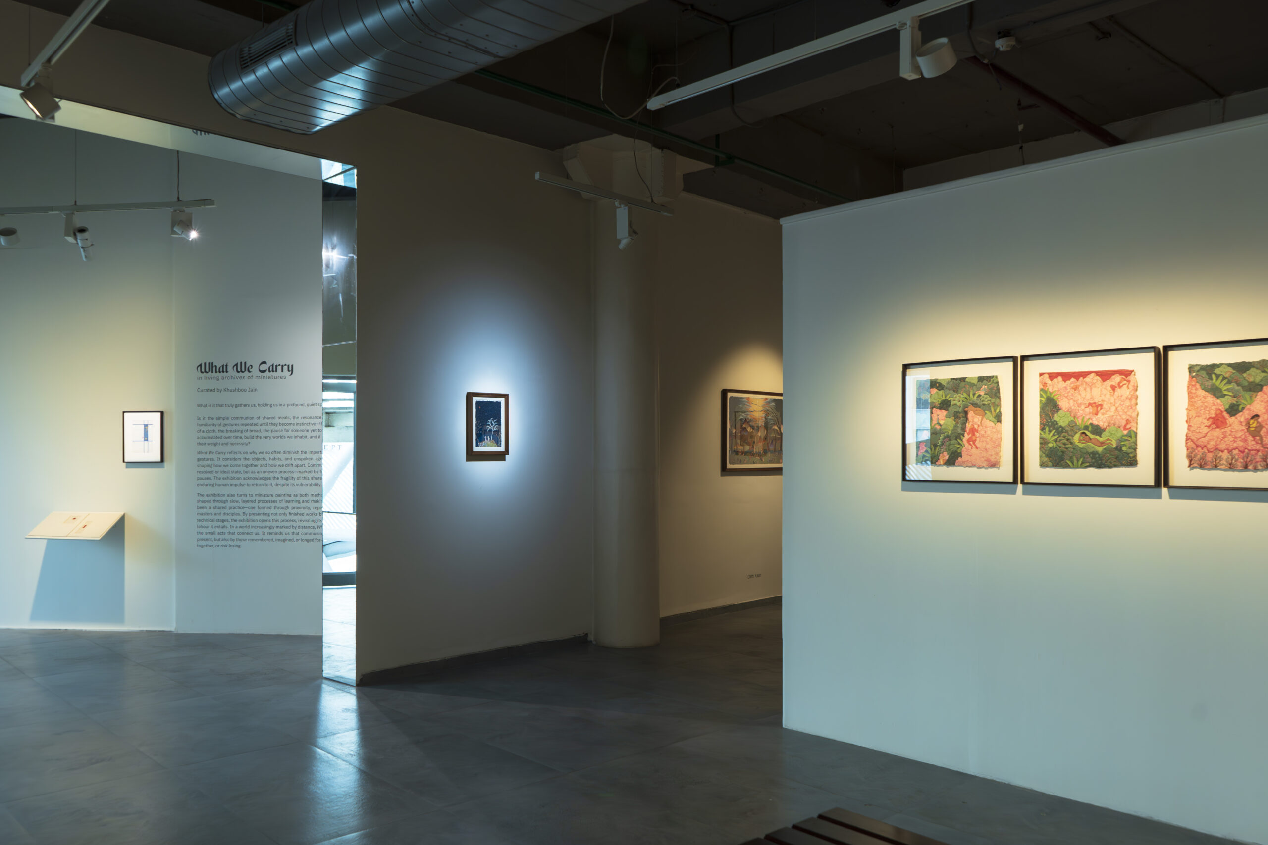 As part of this inquiry, the exhibition also turns to the practice of miniature painting. Traditionally shaped by stylised methods of learning and making, it is a form built slowly through layers of pigment and surface. Miniature painting has long been a shared pursuit, with masters and disciples working side by side, exchanging skill and space, shaping a sense of community through practice. This exhibition opens that process by showing not only finished images but also studies, fragments, and technical stages that reveal the many layers of the form. In doing so, it becomes another kind of communion, between artists and traditions.