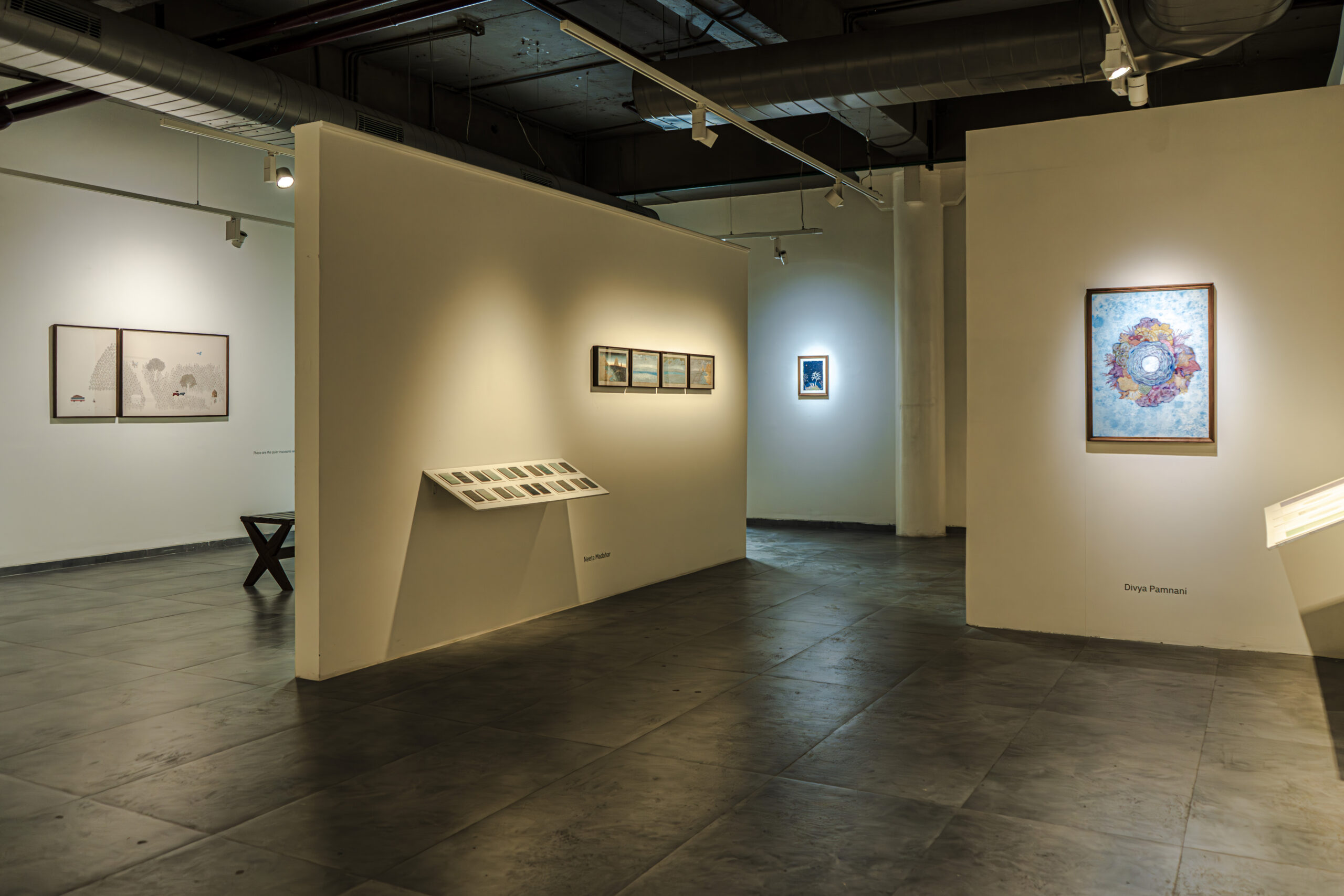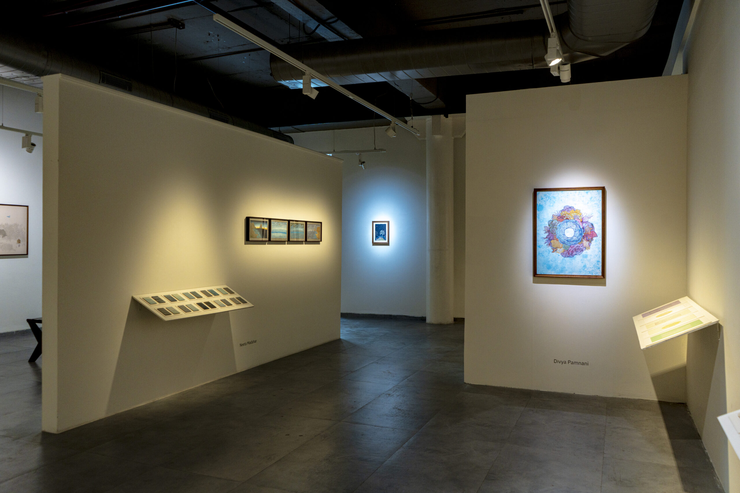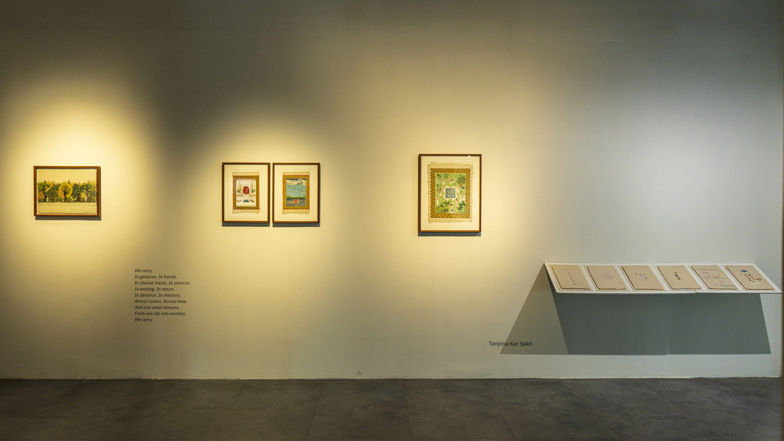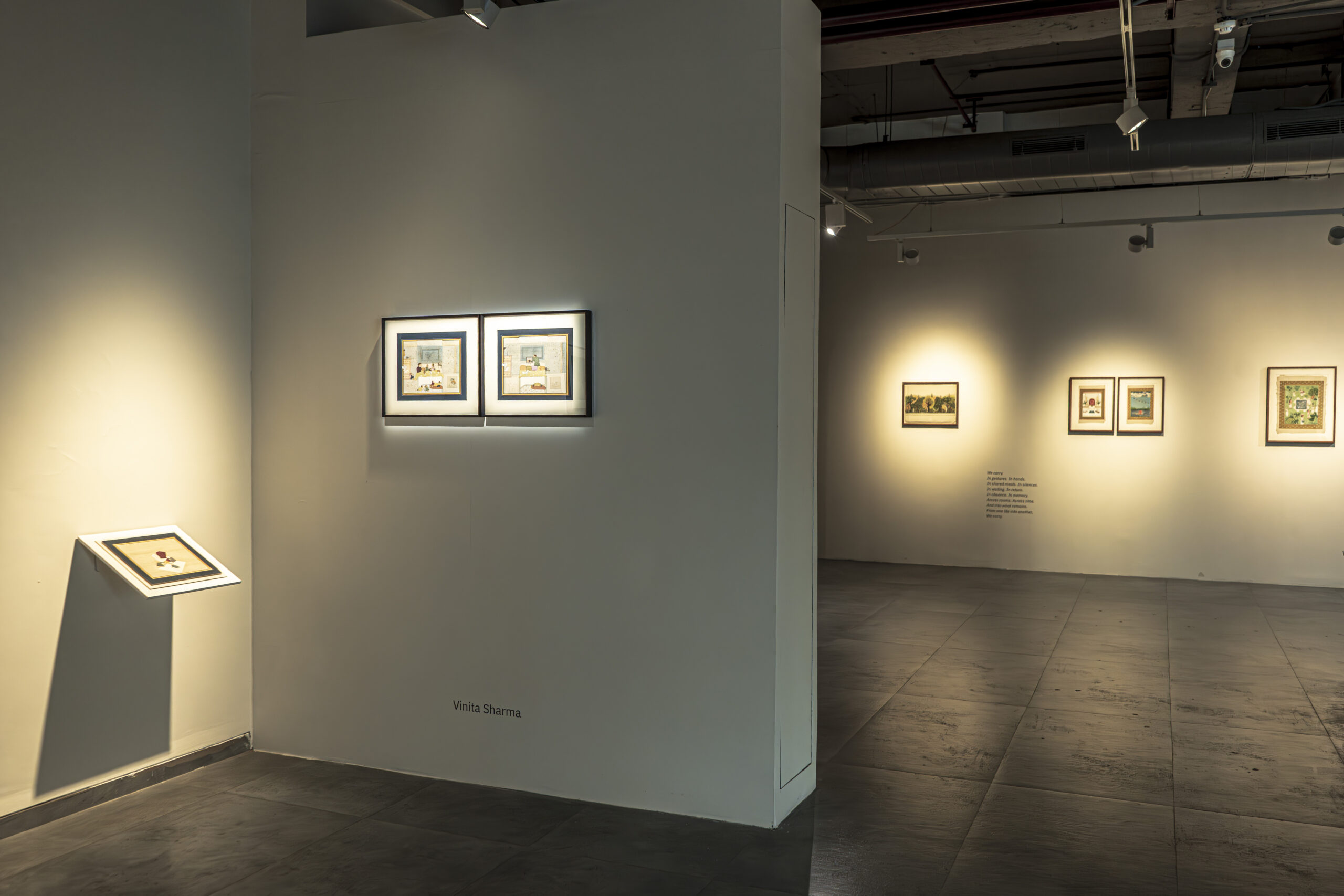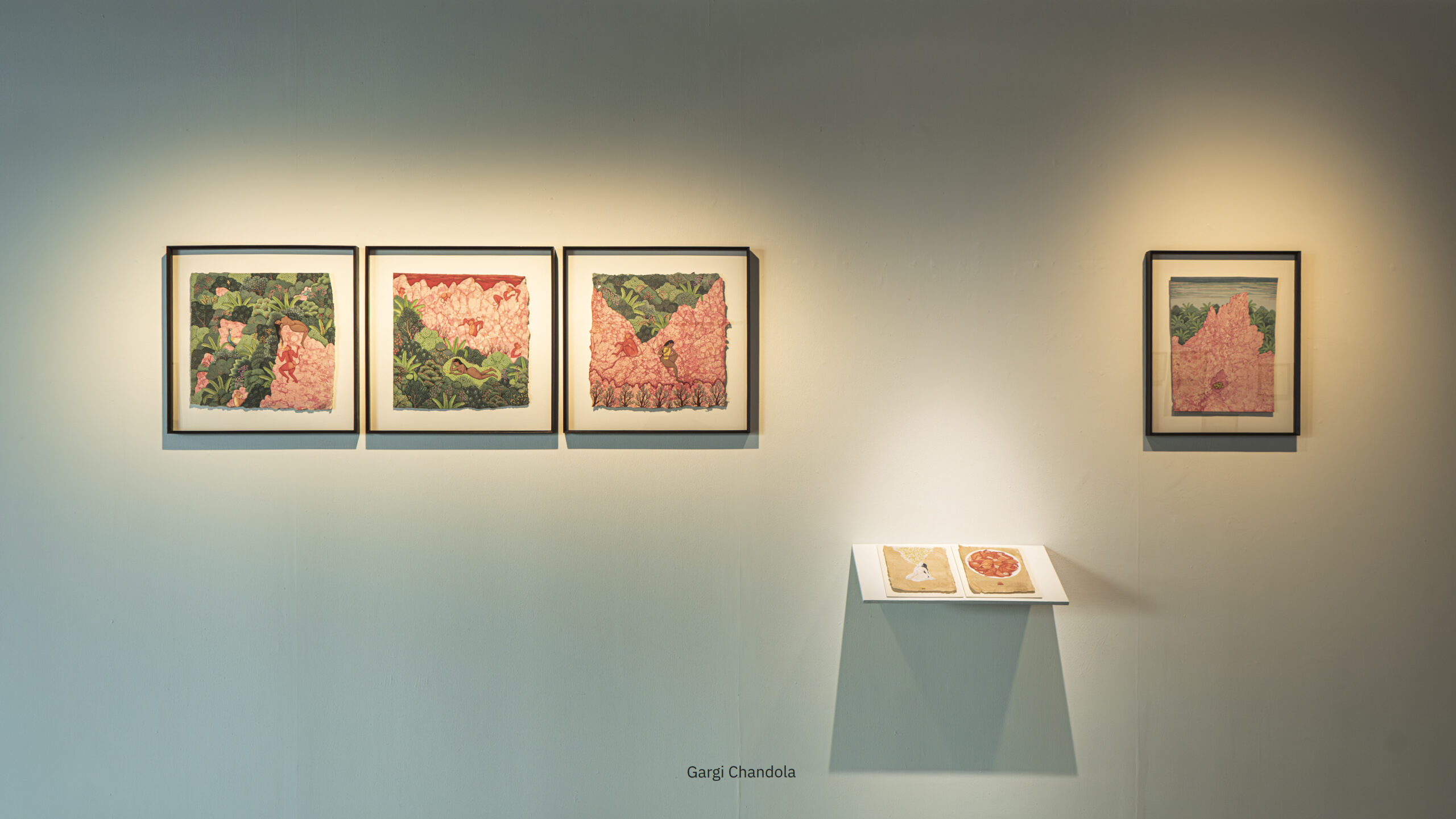 As part of this inquiry, the exhibition also turns to the practice of miniature painting. Traditionally shaped by stylised methods of learning and making, it is a form built slowly through layers of pigment and surface. Miniature painting has long been a shared pursuit, with masters and disciples working side by side, exchanging skill and space, shaping a sense of community through practice. This exhibition opens that process by showing not only finished images but also studies, fragments, and technical stages that reveal the many layers of the form. In doing so, it becomes another kind of communion, between artists and traditions.