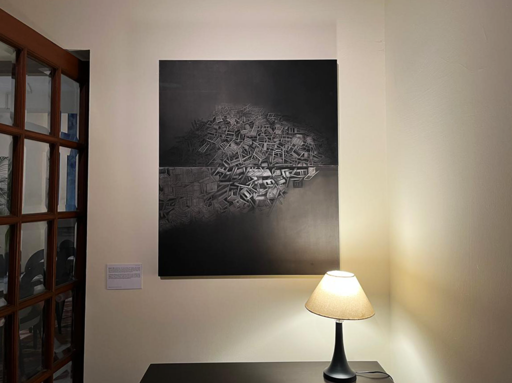Bedamati’s charcoal drawings of stacked chairs sit comfortably within this approach. At first glance, they can simply be seen as beautifully executed works — quiet, precise, and grounded in the realm of still life, a genre often perceived as static or uneventful. Yet, for those who choose to look closer, these seemingly ordinary objects open into layered conversations around class, memory, ownership, and desire. The work does not demand this reading, but it holds space for it.