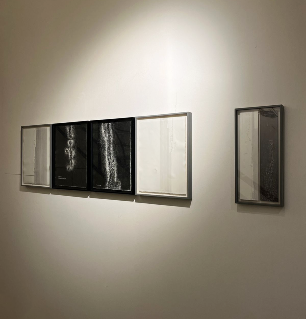 At the entrance, a line of works by Parul Sharma immediately sets the tone. Living in the congested neighbourhood of Seemapuri in Delhi, her practice explores how light itself is a privilege, and how limited access to it shapes daily life. The works capture slivers of light, questioning how much of it we are entitled to, while also linking this light to her own experiences as a young woman navigating the vast, often overwhelming life of a metro city. Onsite, the artist extended her work into the gallery itself, drawing a line on the walls that physically brings the dialogue into the space. Positioned at the entrance, these pieces quietly remind visitors of the disparities that shape different worlds, offering a moment of reflection even before one steps further inside..