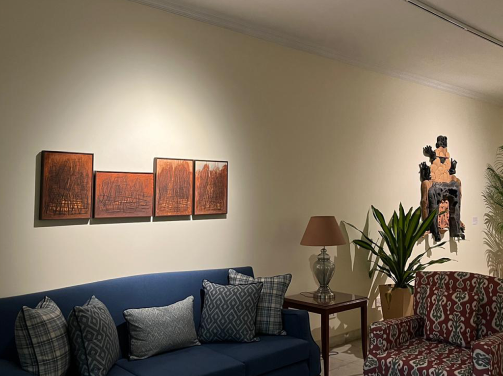 Some of the most meaningful moments while shaping the space came from placing works in unexpected corners. A small writing table with a lamp, a quiet nook that might otherwise go unnoticed — these became sites of a different kind of magic. Away from the conventions of formal display, art found itself in conversation with the everyday, creating moments that felt intimate, personal, and quietly transformative.
